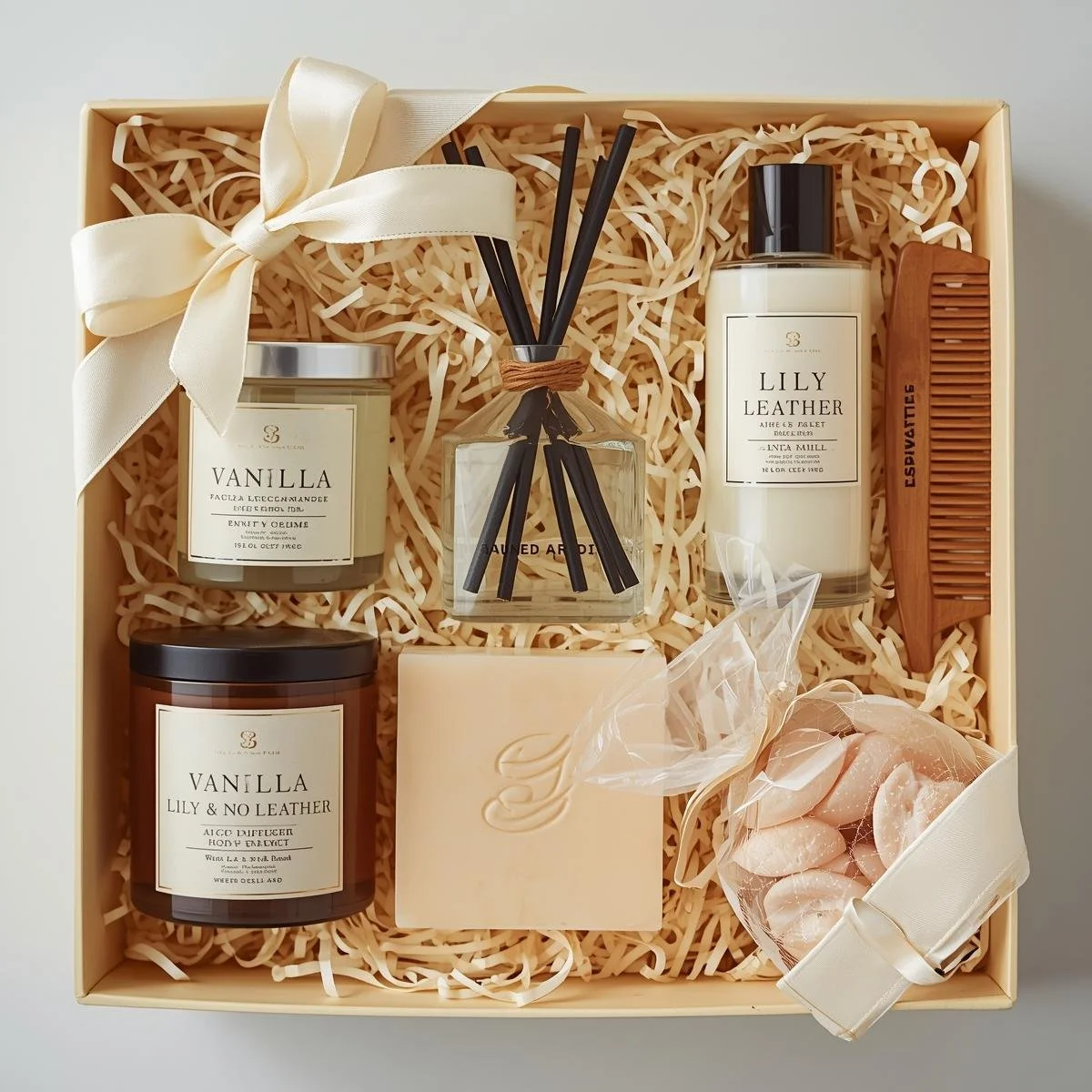 *Les marques et produits figurant sur ces photos ne sont pas contractuels et sont à titre indicatif; En effet, ils varient en fonction des disponibilités de nos artisans et fournisseurs; Le code couleur du coffret reste inchangé.